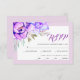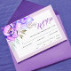 Det här vackra och elegant lila vattenfärgen blommor i lilac-bröllopet OSA har en charmerande design som innehåller en rad mjuka toner, t.ex. lila, blått och lilac. Kortet innehåller även ömtåliga blommor och löv med vattenfärg, där OSAN ord visas i snyggtens skripttypografi. Denna OSA kort är perfekt för alla bröllop firande, vilket gör det möjligt för er att snabbt och enkelt kunna inbjudan era gäster för att bekräfta deras närvaro. Det är säkert att du får en aning sofistikering och charm till din speciella dag.