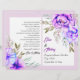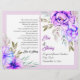 Det här bröllopsprogrammet är ett vackert sätt att visa din speciella dag. Den har en underbar blommigt med lila vattenfärger blommor och blå accenter på hörnen. Blommorna skapar en kontrast till det vita ram som innehåller texten. Ram har ett lilac gräns som motsvarar färg på insidan. På de inre sidorna finns vit text på en lilak bakgrund, och det är lätt att läsa den. Du kan anpassa texten med information om namn, datum, ceremoni och party. För att använda det här programmet lägger du bara ihop det i mitten och får ett häpnadsväckande häfte som återspeglar stil och personlighet.