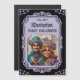 Lägg till en gnutta gotisk glamor till Halloween fest med den här unika karikatyrinbjudan. Den här inbjudan är perfekt för en scoky och elegant Halloween firande. Anpassa inbjudan med information om party, inklusive datum, tid, plats och adresskod. Utformningen har en svart bakgrund med en gotisk ram, skallaccenter och en lila för ett mystiskt handtag. Perfekt för: Halloween fest, maskerad bollar, gotisktemetterade evenemang.
