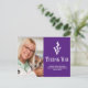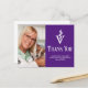 Anpassade lila tack-kort för veterinärutbildning med veterinärmedicinska kaduceus bredvid ditt examensfoto. Anpassa dessa tack-kort med chic vit handskrift bredvid ditt fotografi för din djurklinik.