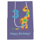 Skämt illustration av en söt tecknad giraffe med multifärgader. Anpassadets ålder och meddelande.