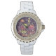 Bild av elegant på en klocka av havslevande varelser på en lila bakgrund.