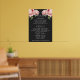 Bröllopsprogram skylt med en vintage illustration av rosa blommor och grönska på en grå bakgrund.