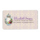Lila Vintage Fransk Tea Party Adressetiketter har en tekruka och en fuktmönsterbakgrund.