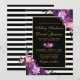 Lila Ultra Violet Watercolor Blommigt Guld och Black & White Stripe-inbjudningskort för bröllop