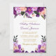 Watercolor Ultra Violet Lila Blommigt och Guld bröllopsinbjudan