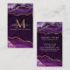 Lila Violet Guld Glitter Marble Agate Monogram Visitkort