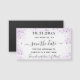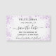En trendig bröllop spara datum magnet. En vit chic bakgrund. Dekorerad med lila, lavender färgad faux glitter-gnistor. Anpassa och lägg till ett datum, ställe och namn. Spara datum skrivs med ett modernt handskript i stil med dekortecken.