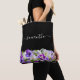 Lila violett blommigt svart skript monogram tygkasse
