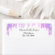 En vit bakgrund. Dekorerad med rosa och lila, violetta falska glittrande droppar, målarfärg som droppas. Personifiera och lägg till ditt namn och adress. Perfekt för bröllopsfest, baby shower eller födelsedagsfirande inbjudningar.
