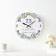 Vit bakgrund, violett, grön och svart text. Dekorerad med lavendelblommor och eukalyptusgrönska. Personifiera och lägg till era namn och bröllopsdatum eller jubileumsdatum. Klockans siffror under blommorna.