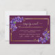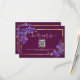 Elegant burgunderröd bröllops-svarskort med lila violetta blommor och en raffinerad guldram. Designad med en traditionell layout för svar, inklusive gästantal och måltidsval för en komplett och funktionell upplevelse. Perfekt för höstbröllop, romantiska firanden och formella kvällsevenemang. Denna design passar vackert med en koordinerad bröllopspappersserie för en sammanhängande och lyxig look.