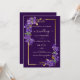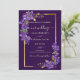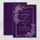 En elegant mörklila bröllopsinbjudan med kaskaderande lila violetta blommor och en raffinerad guldram. Perfekt för romantiska, formella och lyxiga bröllop, denna design kombinerar rika juveltoner med känsliga blomdetaljer för en tidlös och sofistikerad look. Idealiskt för kvällsbröllop, klassiska firanden och par som planerar ett elegant mörklila bröllopstema.