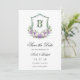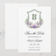 Det här vackra lila och vita blomsterkronebröllopet "Save the Date"-kort med brudens och brudgummens initialer skulle vara perfekt för ditt bröllop. Dess formulering är traditionell men ändå modern och typsnitten är utsökta. De lila och vita akvarellrosorna, peoniorna och liljekonvaljerna och de luftiga gröna växterna är fantastiska tillsammans.