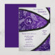 Den här söta basketfirande inbjudan har en realistisk bild av en abstrakt överdimensionerad, stiliserad basketboll med omfärgade alternerande lila och vita paneler - ett doodle-mönster av paisley, blommor och fjädrar i vitt täcker basketbollens lila paneler - anpassa med hennes festdetaljer - av katz_d_zynes