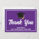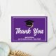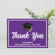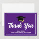 Detta moderna lila och vita anpassade examens tackkort har klassiskt handskrivet tack ovanför din gymnasie- eller högskolenamn för klassen 2025. Anpassa med ditt namn under den svarta examenshatten för fantastiska personliga examens tackkort.