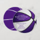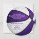 Den här sportbasketbollen födelsedagsfest inbjudan har en stiliserad basketbild med omformad lila och vita paneler, där du kan anpassa detaljerna i party - backsidan visar en enkel minimal basketboll som bara representeras av dess vita sömmar på lila - av katz_d_zynes