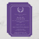 Lila/Vit Monogram Laurel Utandning Studenten Inbjudningar