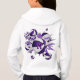 Den här coolan-flickans basketboll har en "explosion" av olika storleka basketbollar som har växlande lila och vita färgade paneler och lila, grått och vita stjärnformer - anpassa med sitt mongram- eller jersey-nummer - design finns på baksidan av hoodie men kan flyttat till eller dupliceras på framsidan - av katz_d_zynes