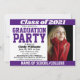 Bjud in dina familj och vänner med denna Lila Vita Skolfärger Foto Examen Inbjudan. Anpassa med festdetaljer, ditt examensfoto och klassår. Denna skolfärgsinbjudan har massor av skolanda med lila och vita accenter.