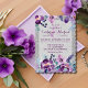 Lila Watercolor Blommigt & Silver Glitter Bröllop Inbjudningar