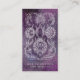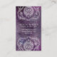 De här affärskorten med trendigets bohemiska teman har en lila av plommon och en blommigt med vit henna-inspirerad vattenfärg. Moderna och unika affärskort för yogalärare, tatuerare, boutiques, saloner, hårstilister, kosmetologer, dekoratorer i insida och mode-stilistorna.