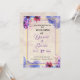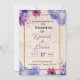 Den här bröllopsinbjudan innehåller en texturerad bakgrund med lila och guld gräns. Den är försedd med levande vattenfärgblommor i nyans av lila, rosa och blått, och exuderar ett konstnärligt och romantiskt utseende. Perfekt för elegant bröllop firande.