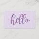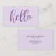 affärskort för söt och elegant med en enkel och trendig för av vattenfärg i hej i en lila som är utformad på en lavendel bakgrund. Ändra bakgrunden till färg och färg i texten på baksidan för att se anpassningsbarna. Designad med hårstilister, kosmetologer, makeup artists och andra kreativets professioneller i åtanke.