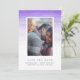De här minimalistkorten och snyggt bröllop spara datum har en lila vattenfärgsdesign med en plats för ditt personliga foto.