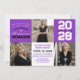 Modern inbjudan till lila och vitt Studenten - 4 foto (3 fram, 1 bak) upprepad insamling av klassår