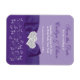 Den här mjuka magneten för lavendel lila och vit blommigt bröllop spara datum har en mörk lila grund och lätt lila blommor på den som matchar den bröllopsinbjudan som visas nedan. Den har en tryckt text på satingets utseende ribba och båge i ett rik royal lila färg med ett par silver-simulerade glitter och diamantjuvelsliknande hjärtan på den. Du kan välja mellan två storlekar. De komar INTE med kuvert. Om du vill ha några andra matchande objekt i den här designen skickar du e-post till niteowlstudio@gmail.com.