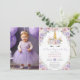 Lila White Blommigt Unicorn Birthday Photo Inbjudningar