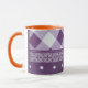 Lila White Checkad Polka Dot Blommigt Damask Art Mugg