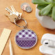 Lila White Checkad Polka Dot Blommigt Damask Art Rund Silverfärgad Nyckelring