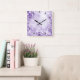 Lila White Flowers Wall Clock Fyrkantig Klocka