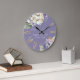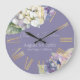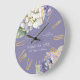 Den här romantiska bröllop-klockan i blommigt har vattenfärgsfärg och vit lila över en dammig lila lavender-färgad. En ömtålig bukett av vattenblommor visas på toppen och en annan på grund. Siffrorna skrivs ut i en guld-romersk sifferform.