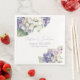 De här romantiska bröllop-servetterna i blommigt har vattenfärgsfärg och vit lila. En ömtålig bukett av vattenblommor visas på toppen och en annan på grund.