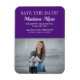 Modern och trendig lila och vita foto studenten Spara datum magneter