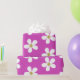 En enkel daisy med söt i vitt på en lila bakgrund med ett centrum i elegant guld.