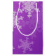 Snyggt och modern festförpackning med lila bakgrund försedd med delikat vitt snöflingor. Den invecklade, snöre-liknande snöflingan ger elegans och charm, perfekt för att fånga julhelgens glatta anda. Perfekt för inslagning av gåvor på ett minnesvärt sätt och för öga-fångst, i säckar eller lådor. Med den här designen kombineras funktionalitet med en protesetik, den skapar som ett val av perfekt för firande och skapar leenden överallt.