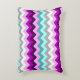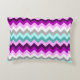 En accentkudde med en vacker, färgstark mönster-utformning av chevoner i plum lila ombre, lilac, white, miktrial, turkos och grått.