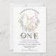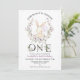 Lila Wildblomma Foto Ungefär 1:a födelsedag Inbjudan till Lila vildblomma andedräkt några fjällande första födelsedagsinbjudan till flicka med en vit bunny, svart blommigt dekorerad ord, ljus lila och ett foto på baksidan.