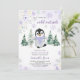 Fira säsongen och din lilla annons med vår Lila Winter Penguin Baby Shower-inbjudan! Inbjudan har en söt penguin som sitter i en mysigt sjal av lila, omgiven av snönära gräs träd och känslig lila och silver snöflingor. Mjuk lila och vita blommigtar tillför lite elegans till denna vinscen, skapar den perfekten för en flickas vinteromdiskuterade babydusch. Denna inbjudan ger värme, stollig och charm till firande. BBS945