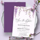 Meddela din bröllop i stil med detta blommiga, lila skriftsnitt Wisteria Spara datum-kort. Med vattenfärgswisteria som flödar utför i eleganta nyanser av lavendel och violett, fångar denna design en romantisk trädgårdsstämning. Den graciösa, kursiverade typografin tillför en tidlös touch, vilket gör den perfekt för vår-, sommar- och utomhusbröllop. Oavsett om du planerar ett botaniskt, bohemiskt eller klassiskt bröllop, sätter denna vackert designade spara-datum in den perfekta tonen för din speciella dag. Personifiera med era namn, bröllopsdatum och lokaldetaljer för att skapa ett minnesvärt tillkännagivande.