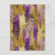 Behålla i kontakt med vänner och nära anhöriga med ett vackert Chiyogami mönster-vykort med lila wisteria mot guld bakgrund.