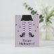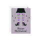 Desteis roligt Halloween illustrerar lila och vitt strimlat ben tillsammans med några spindlar som hänger från en sträng med spindelnät. Häxan bär en svart kjol och svarta skor. Skorna har vissa uppgifter om lilan på dem. Det finns också ett anpassningsbara textområde som nu lyder: "Happy halloween!". Bakgrunden till färg är lätt lila, men den kan ändras till vilken annan färg som helst om så önskas.