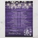 Den här snyggten kan Rustic bröllop schemaläggningstidslinje med söt string ljus och Mason burk vara personlig med dina bröllop-detaljer i chic, vit text på bakgrunden till en lila träpaneler. Designad av Thisisnotme©