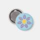 Fira vår och Påsk med den här söta blommigten magnet med en sju petglödgad blomma med Påskägg av lila! Mittpunkten har en roligt med vita och gult-polkapunkter mot mörkens gult bakgrund, medan hela designen ställs in mot en blek pastellblå. Köp din i dag och lägg till lite Påsk-roligt i kylskåpet, skåpet eller någon annan magnetvänlig metall yta.