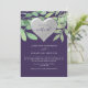 Elegant, modern inbjudan till lila zoombröllop med rustik vattenfärgsgrönt och silver hjärta. Perfektens val för det moderna och romantiska virtuella bröllop firande.