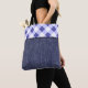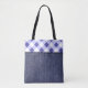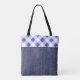 Lilablå karotröja och denim tygkasse